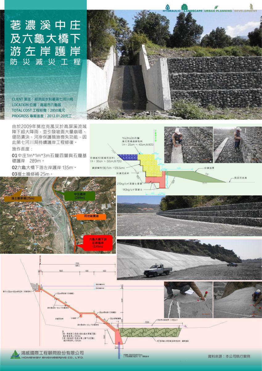 業績實例,土木營建規劃設計,「荖濃溪中庄及六龜大橋下游左岸護岸防災減災工程」,